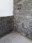 Hévizi u. társasház. Alagsori szuterén lakás salétromos sérült vakolatának eltávolítása. Kapilláris víz elleni injektálási síkok kialakítása. Belső negatív oldali kent szigetelés. Páraáteresztő lélegző vakolat rendszer.
